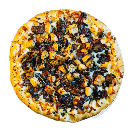 Garlic sauce, mozzarella, chicken, sautéed mushrooms, roasted garlic, caramelized onions, Romano & herbs.