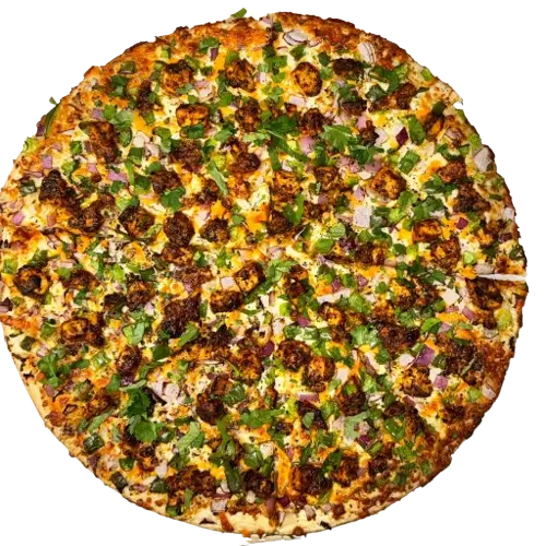 Butter Chicken Sauce, Chicken, Green Peppers, Onions, and garnished with cilantro.