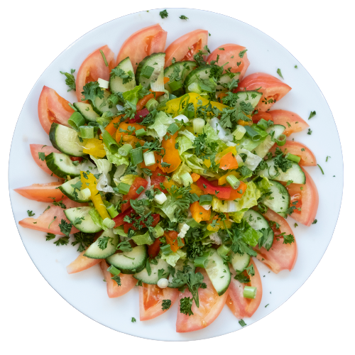 Romaine lettuce, cucumber, mixed bell peppers, tomatoes, green onions, mint, parsley, herbs, and our in-house fattoush dressing. Topped with toasted pita chips.