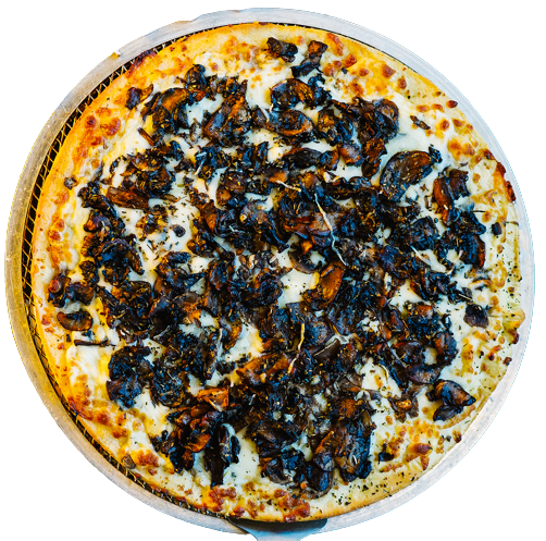 Light garlic sauce, mozzarella, sautéed mix of mushrooms, Parmigianino, asiago, herbs & fresh garlic.