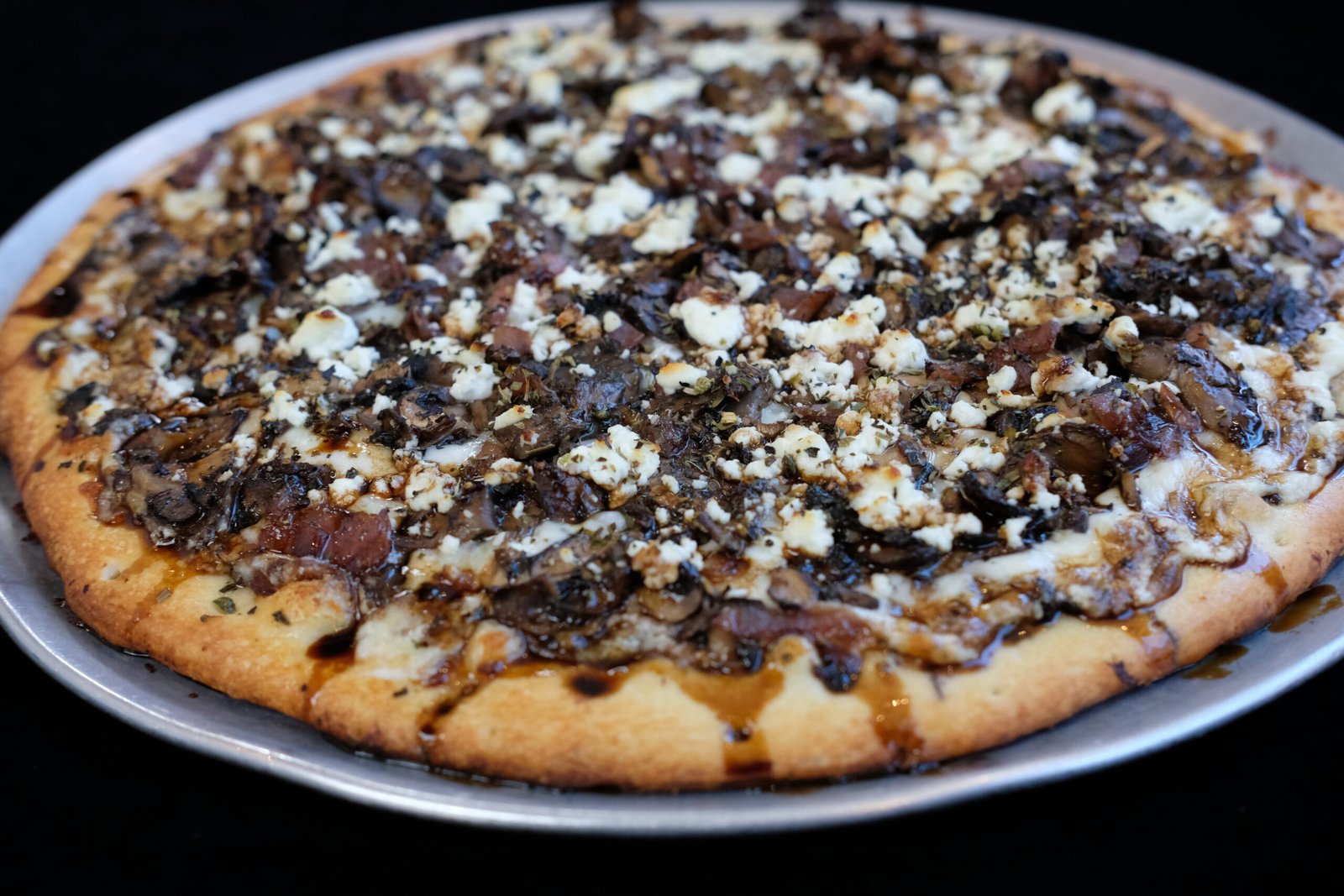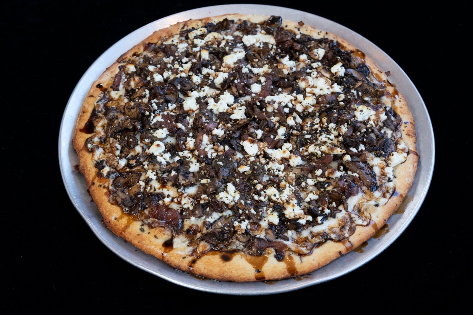 Ricotta and garlic sauce, mozzarella, sautéed mushrooms, caramelized onions, goat cheese & balsamic reduction.