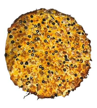 Aioli mayo sauce, grilled chicken, chicken Jambon, mushrooms, black olives, corn, mozzarella, cheddar, and herbs